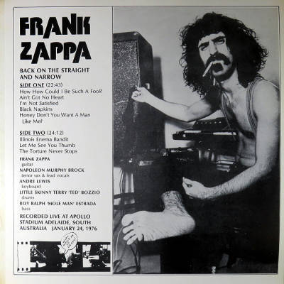 Frank Zappa, Ike Willis, Denny Walley, Warren Cucurullo, Arthur Barrow, Vinnie Colaiuta, Ed Mann, Tommy Mars, Peter Wolf - Side #1, tracks 2-3: 1978 09 21 - Mid Hudson Civic Center, Poughkeepsie, NY